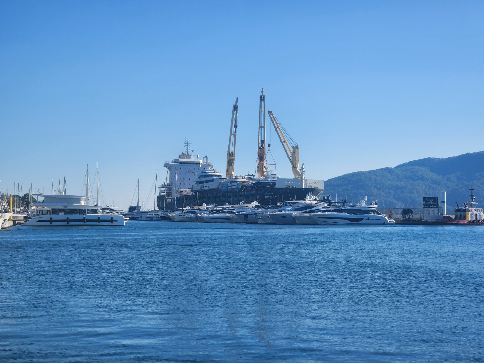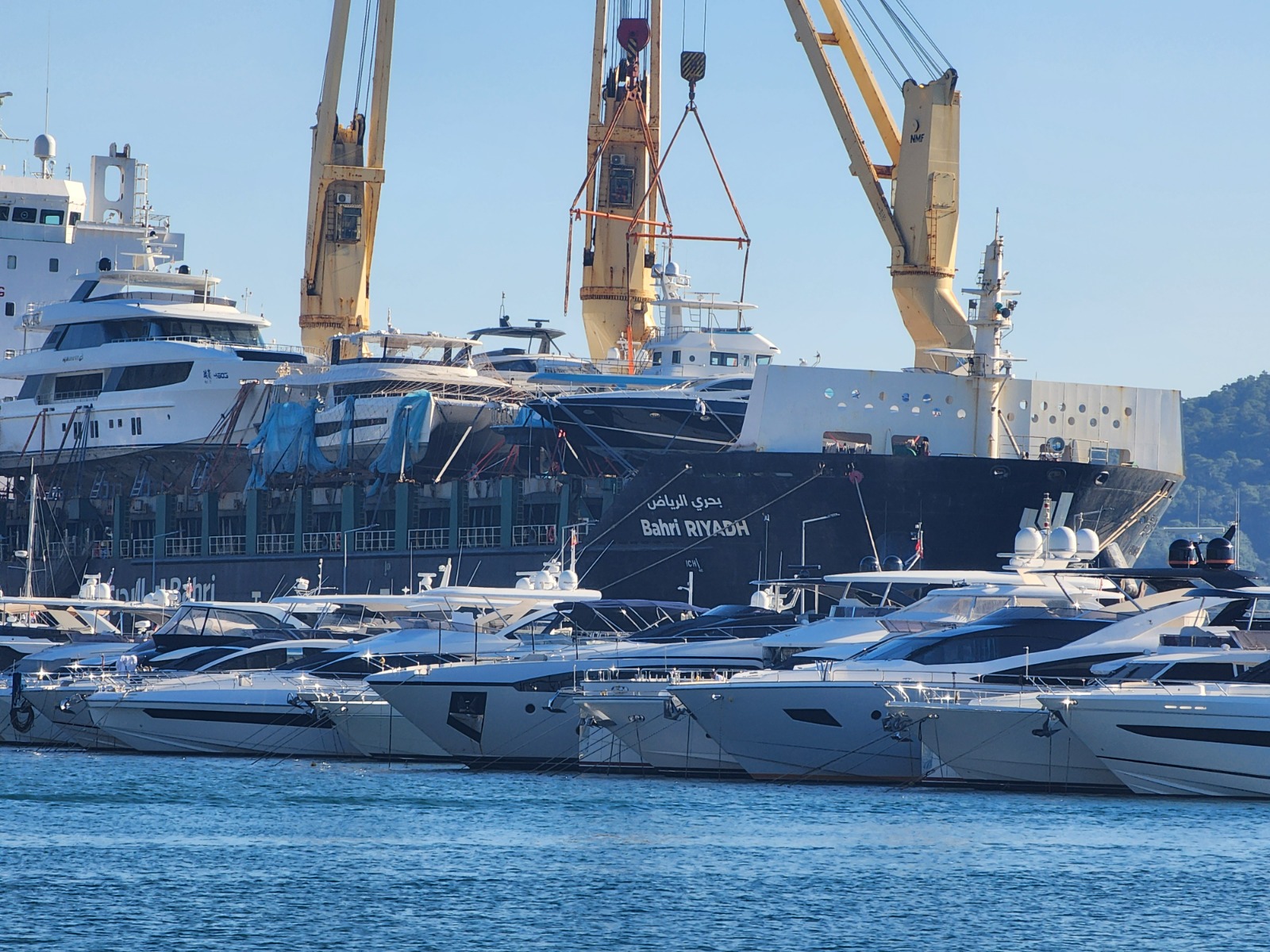 Marmaris’e lüks tekneleri getiren ve zaman zamanda götüren kargo gemisi “Bahri Rıyadh” muhabirimiz Kenan Gürbüz tarafından görüntülendi. Dev gemilerin güvertelerinde yer alan çok sayıda lüks yat dikkat çekti. Yetkililer, gemilerin sık sık bölgede bulunan marinalara geldiği bilgisini verdiler. Bahrı Rıyadh gemisi 2014 yılında inşa edilmiş olan ve halen Suudi Arabistan Bayrağı altında bulunan bir General Cargo Ship gemisi.