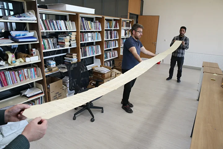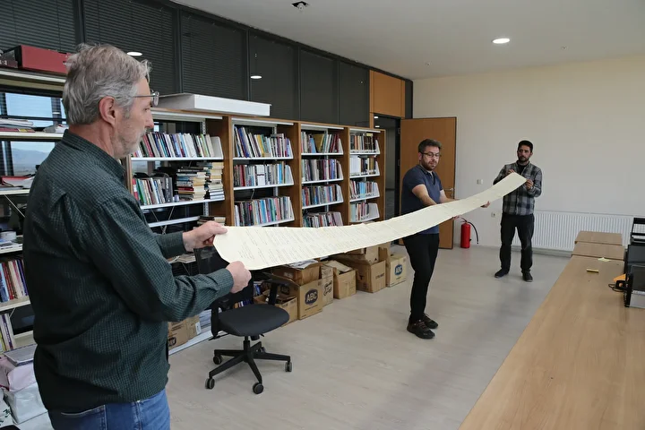 “Abdulkadir İnan o dönemde esnaf şeyhi olan Arif Efendi ile görüşmüş ve belgeden haberdar olmuş fakat Arif Efendi korumacı bir yaklaşımla belgeyi sadece göstermiş, incelemeye ve not almaya müsaade etmemiş. Biz fütüvvetnamenin açıkçası kaybolduğunu düşünüyorduk çünkü elimizde herhangi bir veri yoktu. Fütüvvetname muhtemelen 1942’de Erzurum’a gelen Cemalettin Server Revnakoğlu tarafından ele geçiriliyor, onun arşivine giriyor ve onun arşivi de daha sonra Erzurum Tarih Derneğinin arşivine intikal ediyor. Dernek arşivleme probleminden dolayı 2 yıl önce bir protokolle evrakı Erzurum Şehir Arşivi’ne bağışladı. Biz, bağışlanan bu koleksiyonu peyderpey dijitalize edip dijital ortama aktararak tüm dünyanın açıkçası erişimine açmaya başladık.”