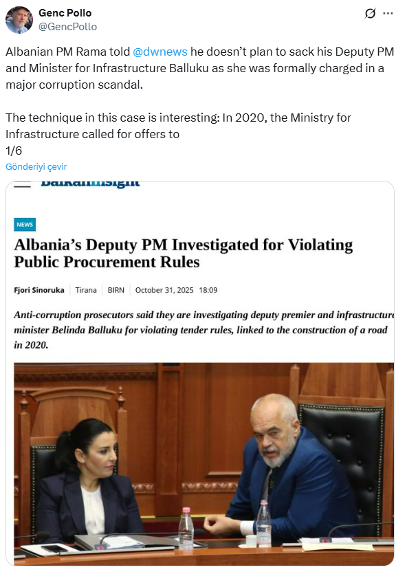 Eski bakan Genc Pollo, sosyal medya hesabından ihale sürecine ilişkin belgeleri ve detayları paylaşarak söz konusu olayı kamuoyunun gündemine taşıdı.