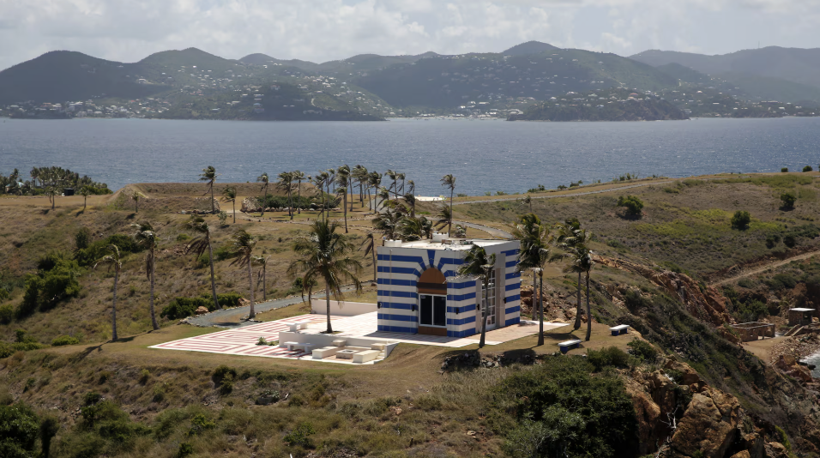 Jeffrey Epstein’ın Karayipler’deki özel adasında bulunan tuhaf mavi çizgili bina, izin kayıtlarına göre aslında bambaşka bir tasarıma sahip bir müzik pavyonu olarak planlanmış: NBC News’in 2019 yılında incelediği belgelere göre, ortaya çıkan yapı sunulan projelerle örtüşmüyor.
